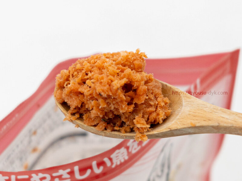 優しい味わいでとても食べやすいです。ふんわり食感で塩気は控えめ。生タイプのふりかけに似た仕上がりになります。