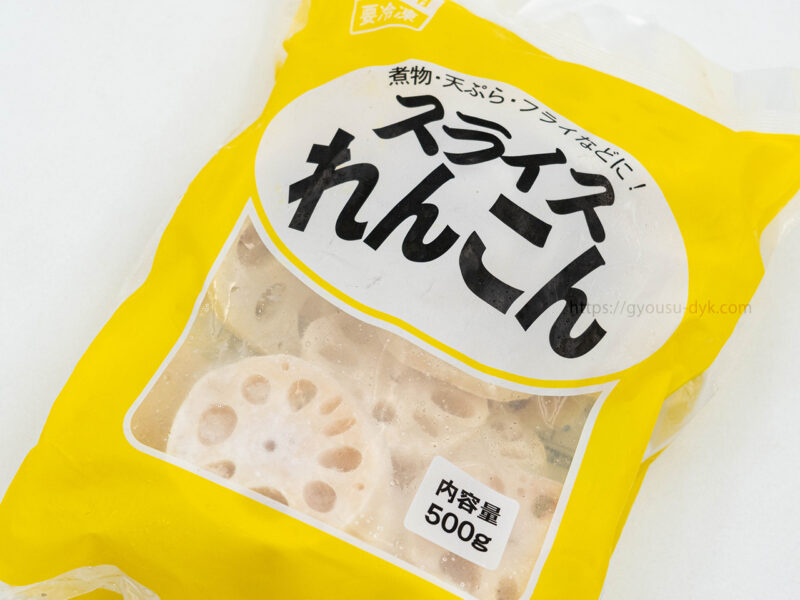 「スライスれんこん」は、業務スーパーで買える冷凍野菜です。皮をむいてスライスしたレンコンを、軽く湯通しして急速冷凍されているので、冷凍のままを調理して使うことができます。