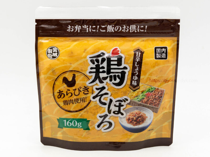 業務スーパーで買える鶏そぼろは、甘辛しょうゆで味付けされた粗びき鶏そぼろです。